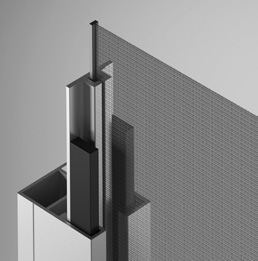 Deze oplossing is perfect voor volledig glazen gevels. De lijn bedekt de beglazing niet waardoor er een architectonisch interessant effect wordt bereikt. Vanwege het ontbreken van zijgeleiders waarmee het doek zou worden geรฏntegreerd en dus vanwege de lagere stabiliteit, wordt deze oplossing aanbevolen op plaatsen die beschermd zijn tegen de wind.
